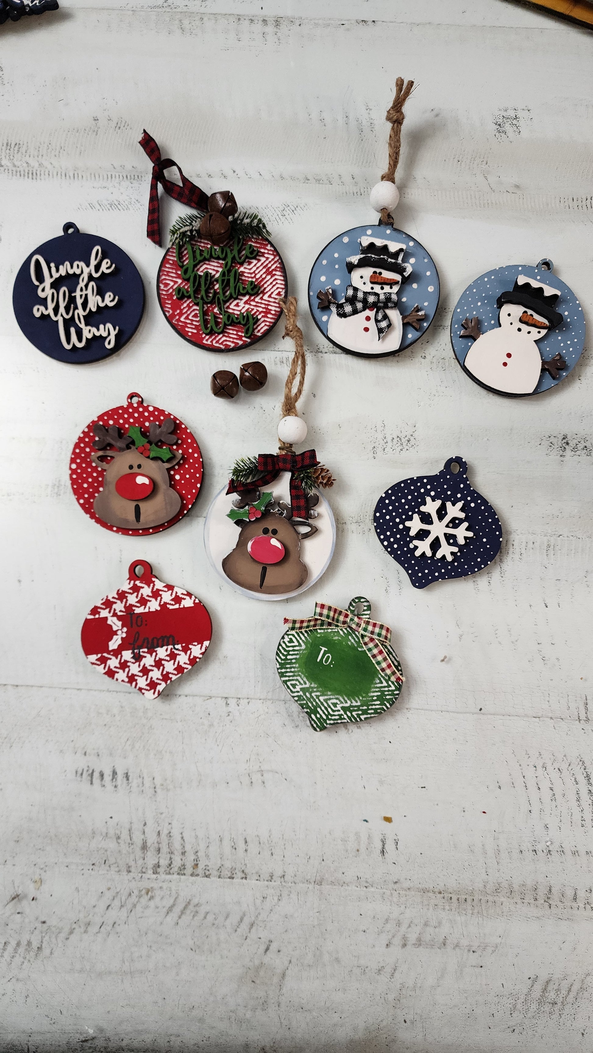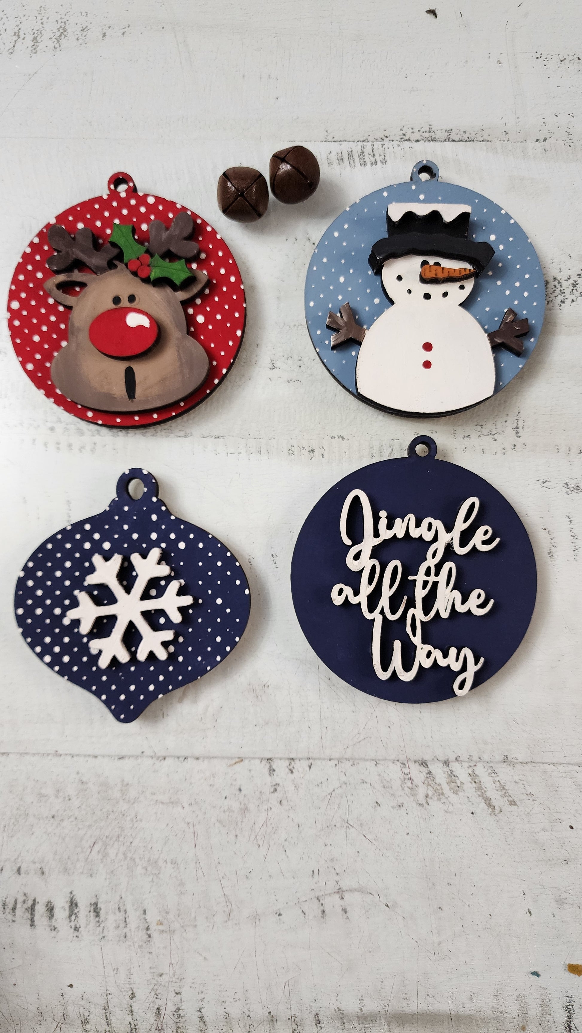 Christmas Ornament Set #1 Rudolph, Jingle, Snowflake, Snowman