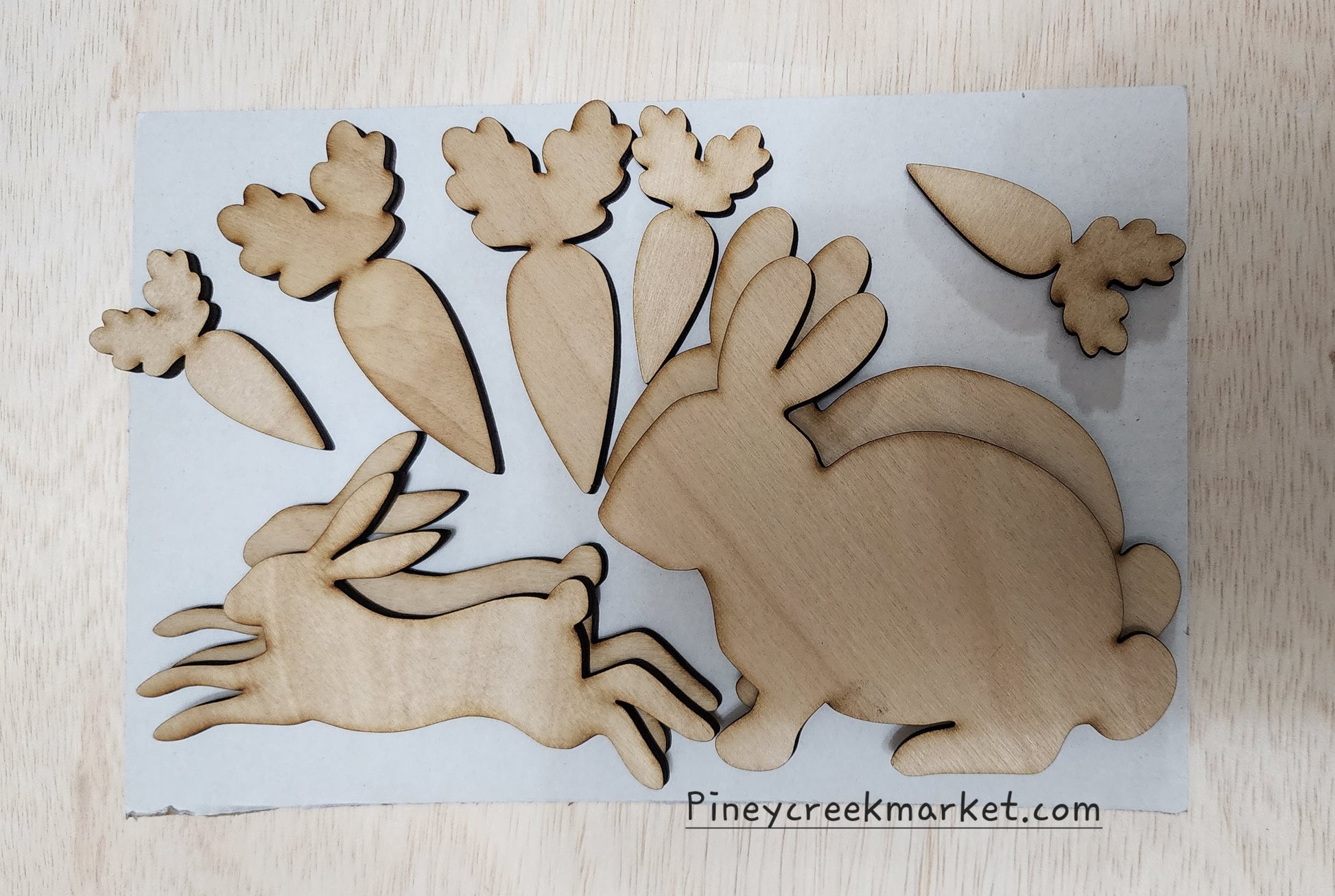 Asst. Bunnies and carrots. Small sizes. Great for package, bows and many other craft projectsÂ