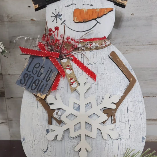 Ready to paint standing or leaning snowman. About 14x9 inches tall